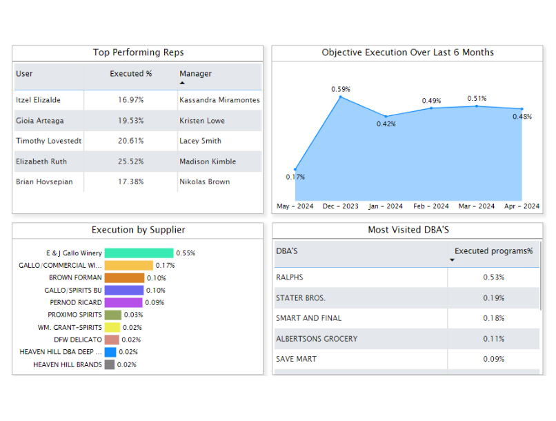Managers see market share, live field execution. Sales leaders access trends, performance data, and can link execution directly to revenue.